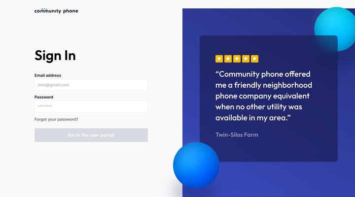 Login page