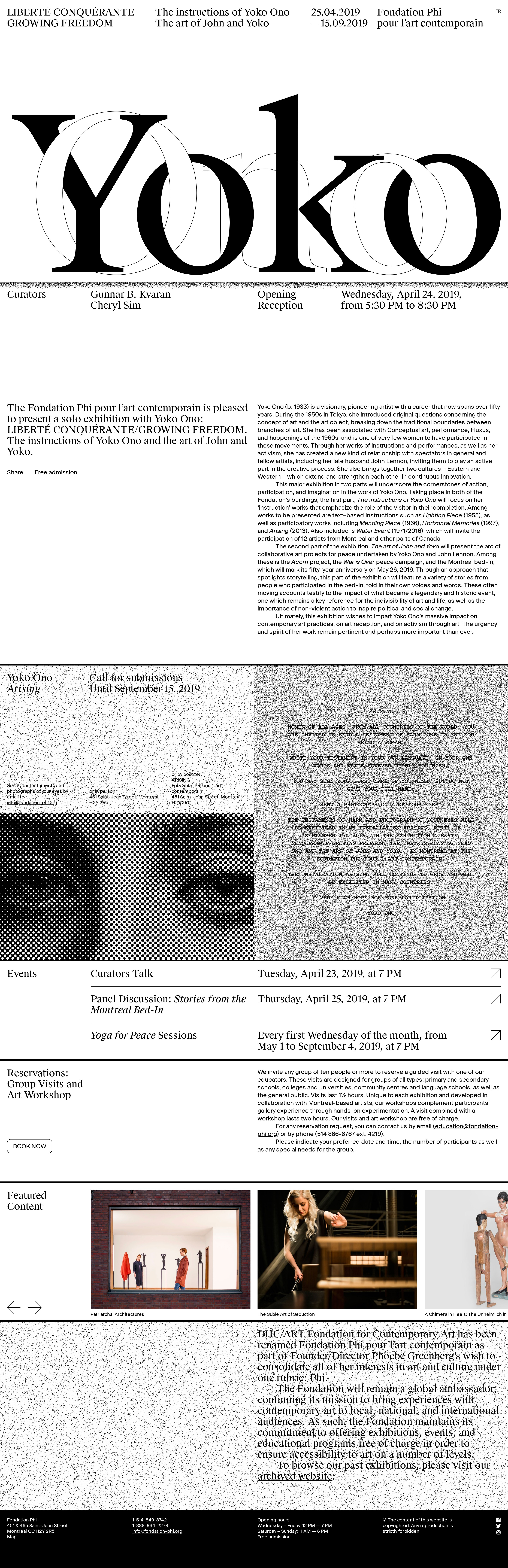 Yoko Ono - GROWING FREEDOM - Fondation Phi pour l’art contemporain