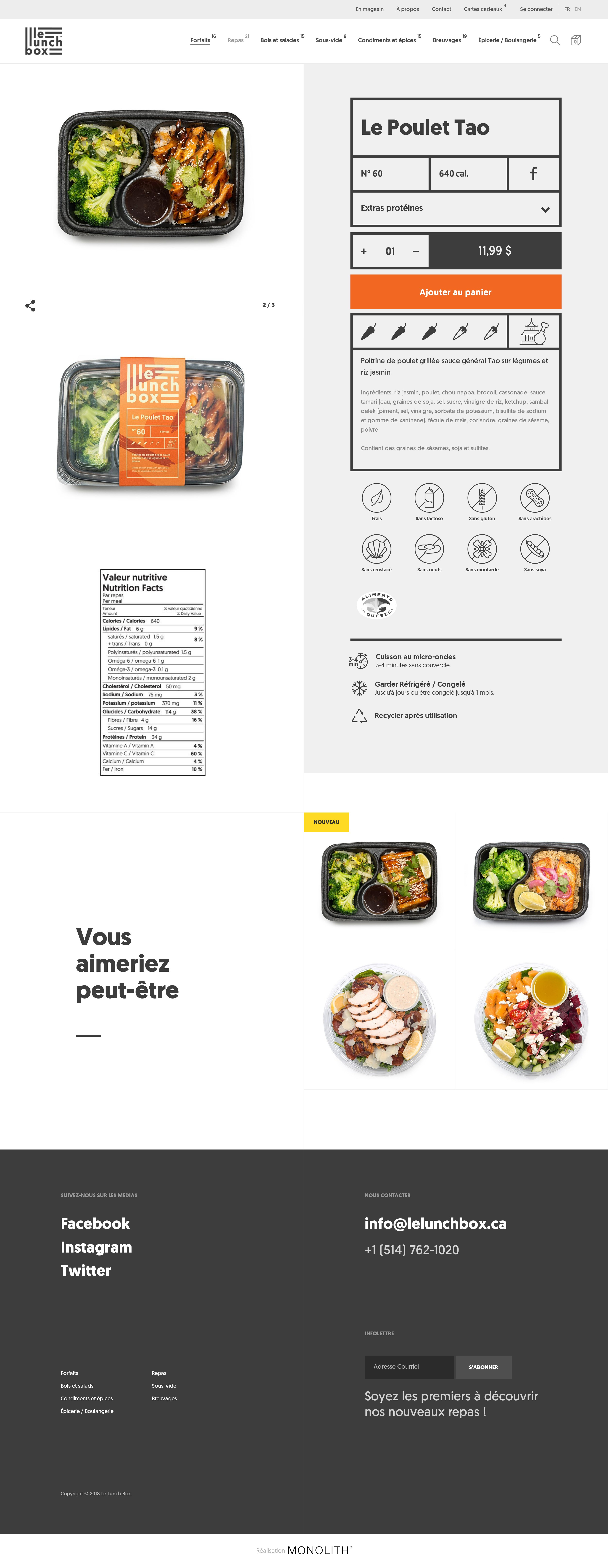 Poitrine de poulet grillée sauce général Tao sur légumes et riz jasmin. Fait avec amour par des chefs épicuriens de Montréal. Bon appétit!