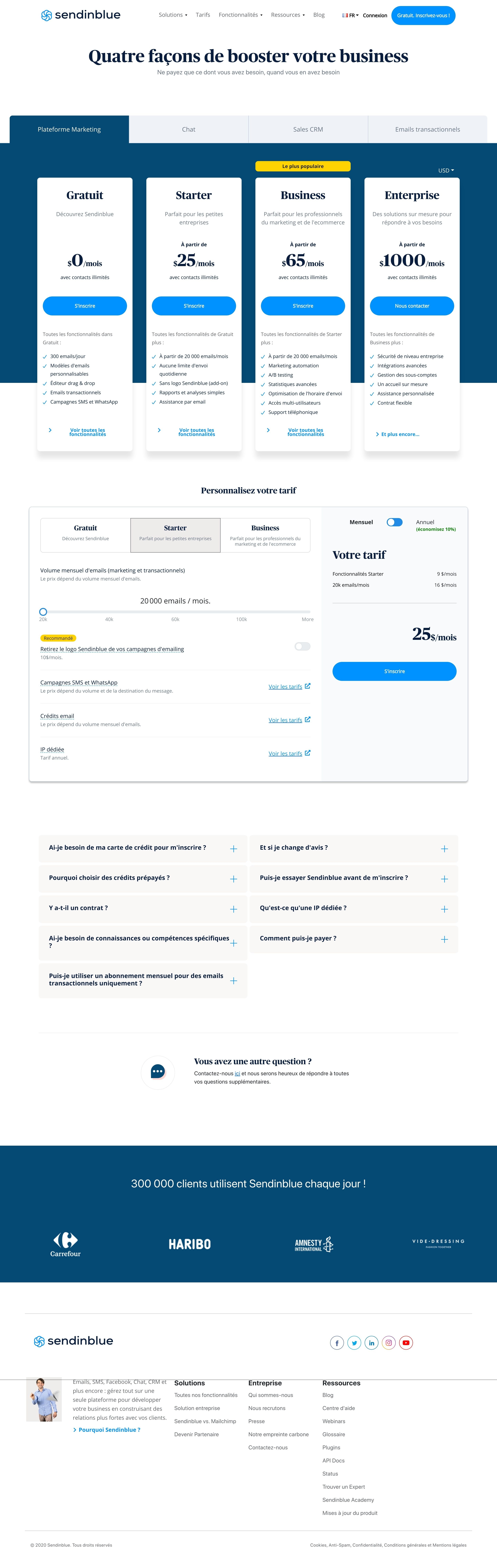 Tarifs pour tous - Sendinblue