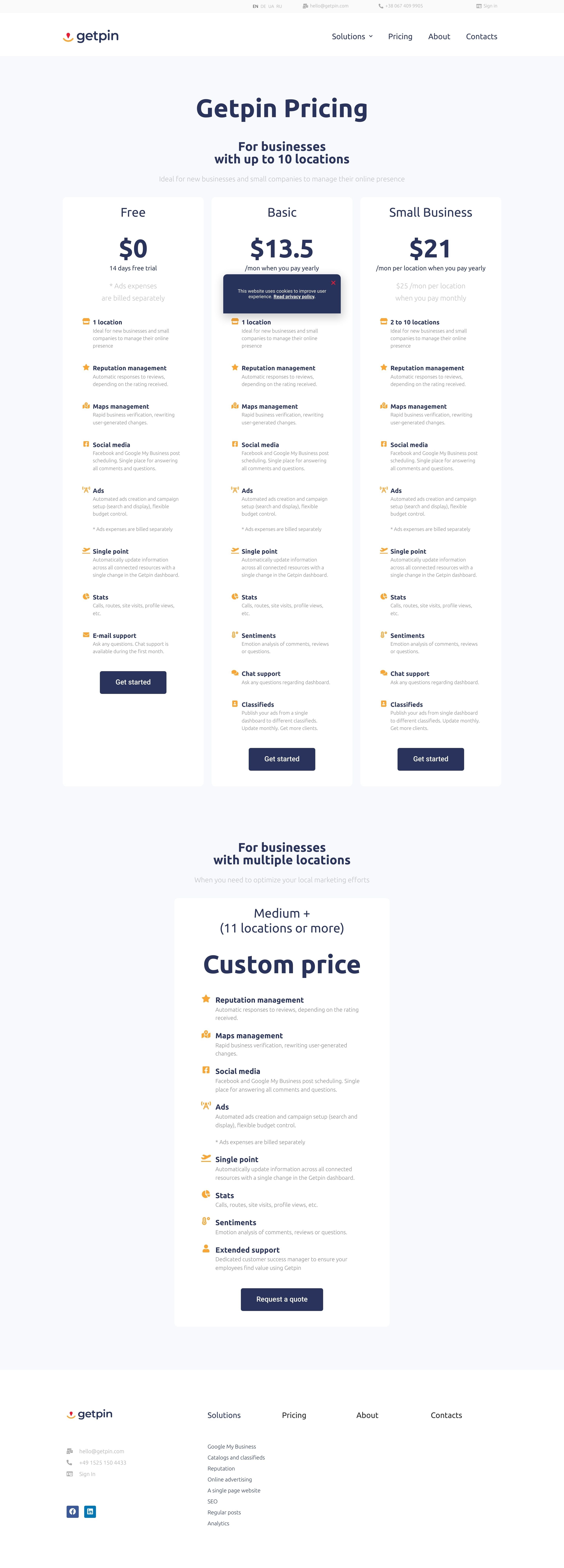 Description and cost of service packages — Getpin