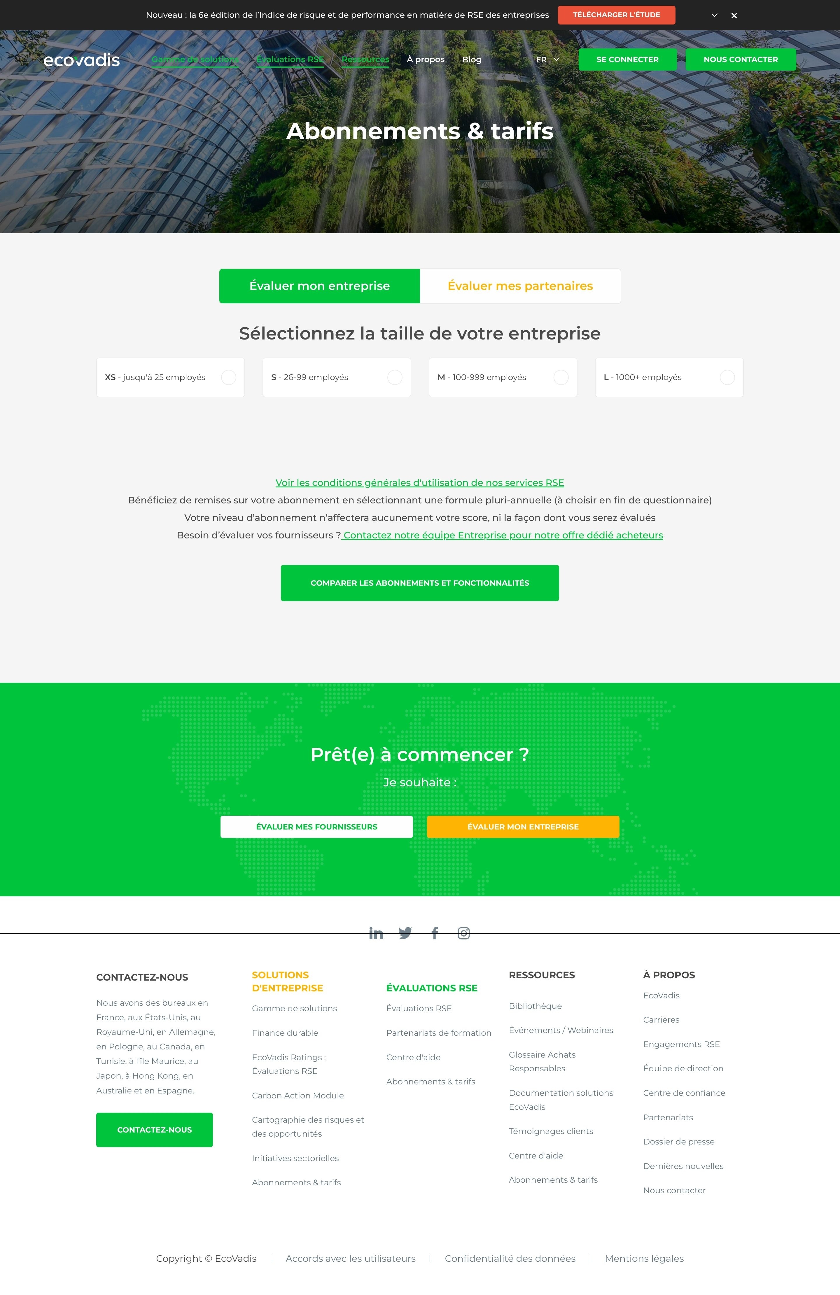 Abonnements et Tarifs pour la notation de la durabilité des entreprises | EcoVadis