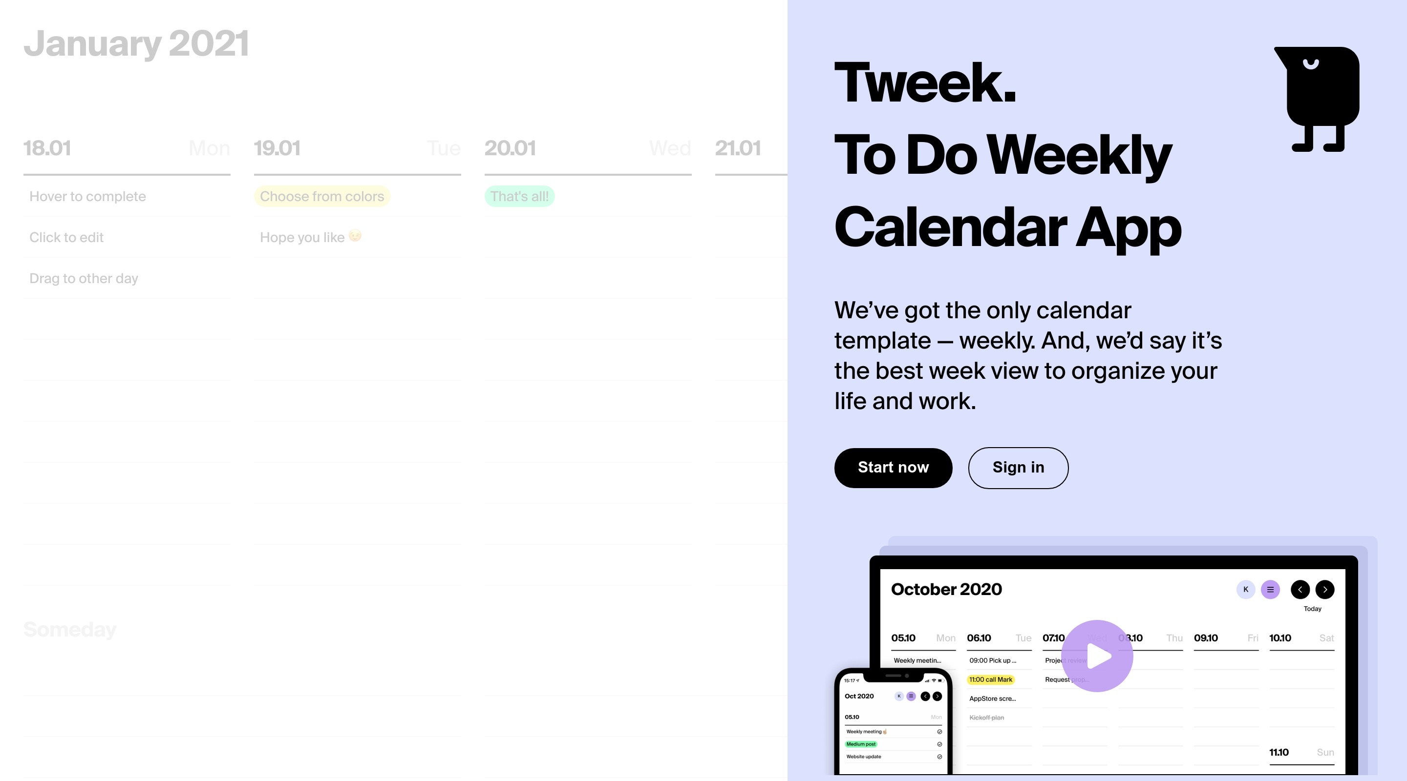 Tweek Calendar — To Do list and Weekly Task Planner App