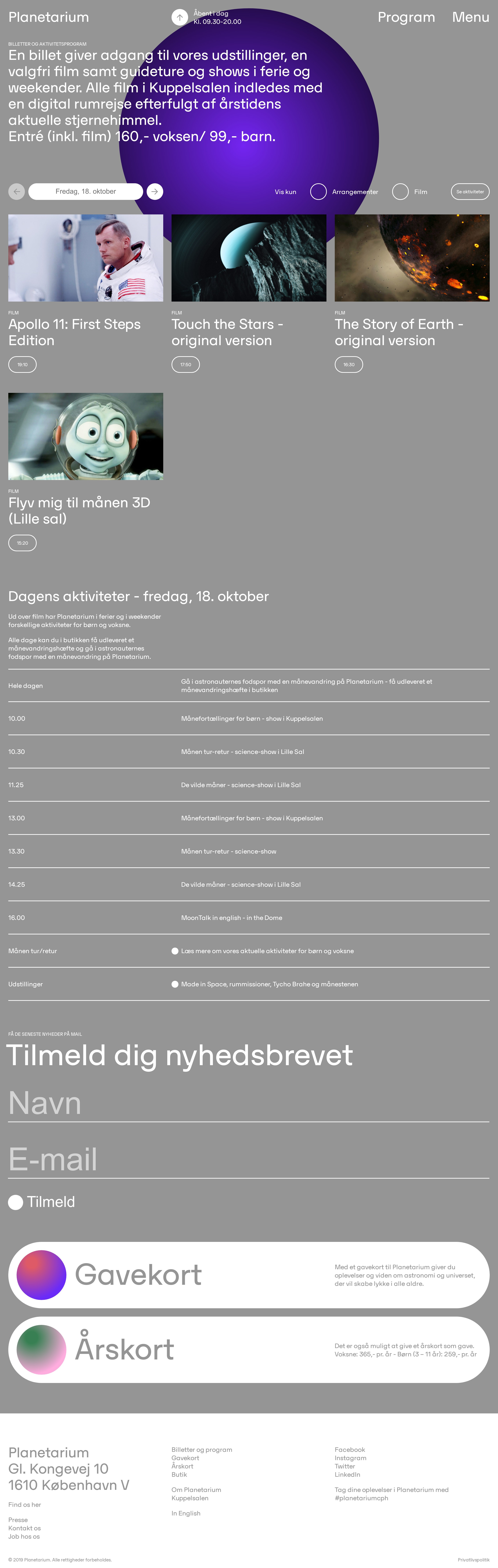 Planetarium - Billetter og aktivitetsprogram