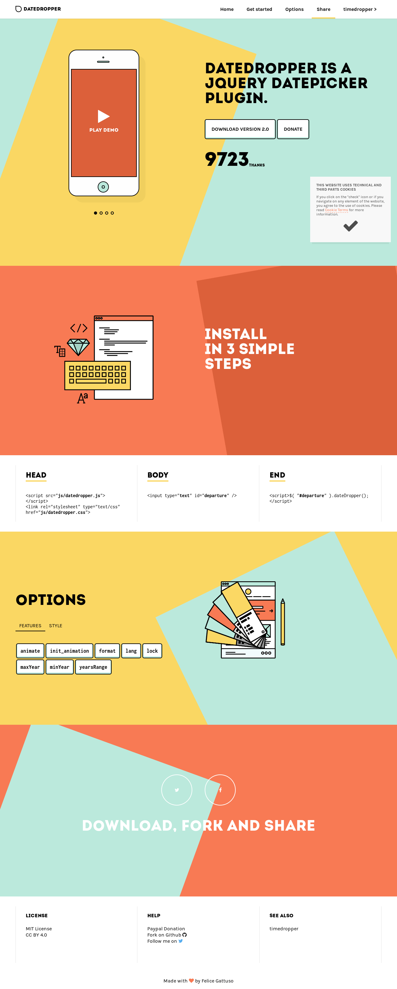 datedropper jQuery datepicker plugin.