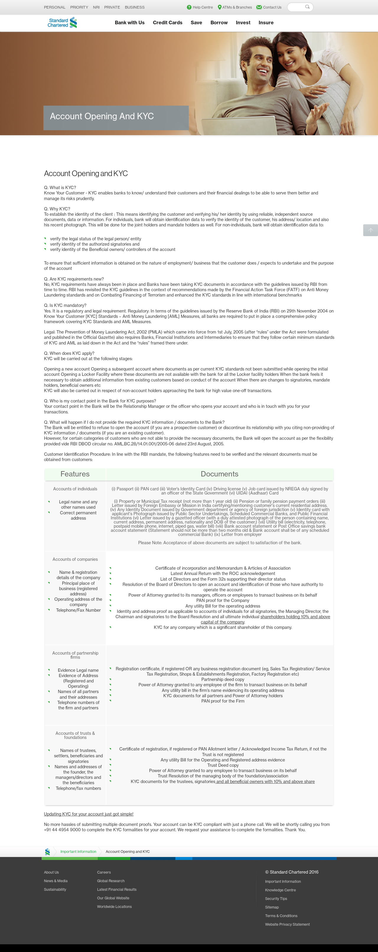 Important Information – Account opening and KYC - Standard Chartered India